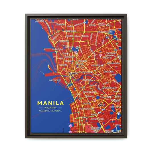 Manila Vibrant City Map Wall Art, Framed Canvas Print, Manila City Decor, Colorful Home Artwork, Unique Gift Idea, Travel Enthusiast
