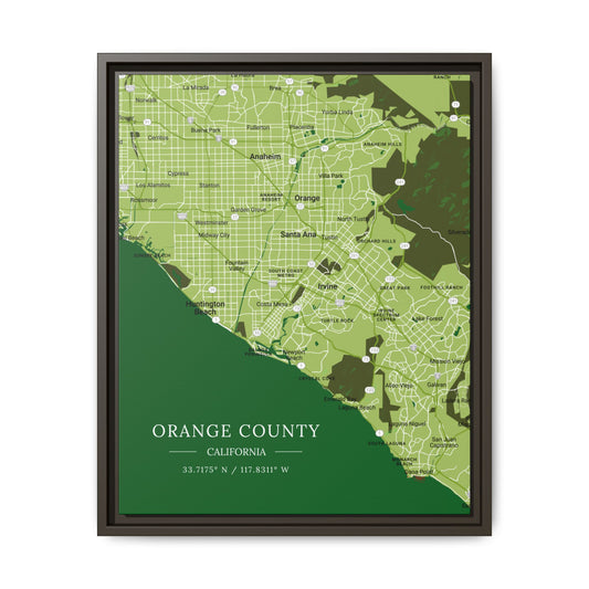 Orange County Map Art Print, Framed Wall Decor, Multi-color Matte Canvas, Home Office Decoration, Unique Gift Idea